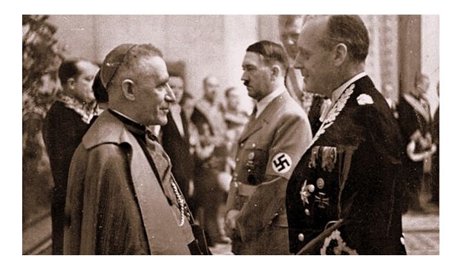 20. yüzyıla kadar taşınan anti-semitizm, daha yüzyılın ilk yarısı dolmadan yeniden çiçek açarak meyvesini verecektir. 1. Dünya Savaşı sonrasındaki Viyana Anlaşması’nın dayattığı olağanüstü ağır şartlar nedeniyle düşmanları tarafından sıkıştırılan Almanya’daki şartların olgunlaşması sadece yeni bir savaşa değil, “Yahudi ırkının topyekûn ortadan kaldırılması” çalışmasına da sahne olacaktır. Vatikan’ın işlerine bir defa da buradan baktığımızda, engizisyon sürecindeki cinayetler bakımından kendini tarihen şantaj altında hisseden Vatikan Papalığının Cermen ırkına öncelik tanınmasında bir beis görmediğini anlarız. Almanya’dan gelen bütün istihbarat bilgilerine kulaklarını, gözlerini kapatarak “üç maymun”u oynayan Papalık, aynı zamanda “tarafsız devlet” taklidi yapmaktan da geri durmayacaktır. Papa 12. Pius’un, tüm savaş boyunca Hitler aleyhinde konuşmaması ve sadık kardinallerine onu ziyaret ettirmesi hafızalardadır. Katolik Kilisesi, geleneklerine uygun davranarak açıkça Yahudi katliamına göz yummuş, bunda, istikbâle yönelik bir fayda ummuştur; başka türlü olamaz. (RESİM 2)