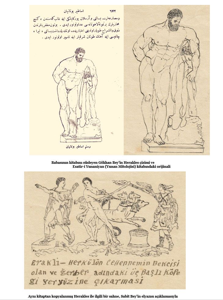 Bunun dışında, hâlen kitaplığımda bulunan ve Dedemin yararlandığı kaynaklardan ‘Yunanı Kadim Tarihi – Esatiri Yunaniyan’ (Eski Yunan Tarihi-Yunan Mitolojisi) kitabından babam Ecz. Gökhan Duran’ın kopyalayarak çizdiği antik Yunan tanrıları resimleri ve ‘Akropol sarayının bugünkü görünüşü’ çizimi de bu cildin ekidir.