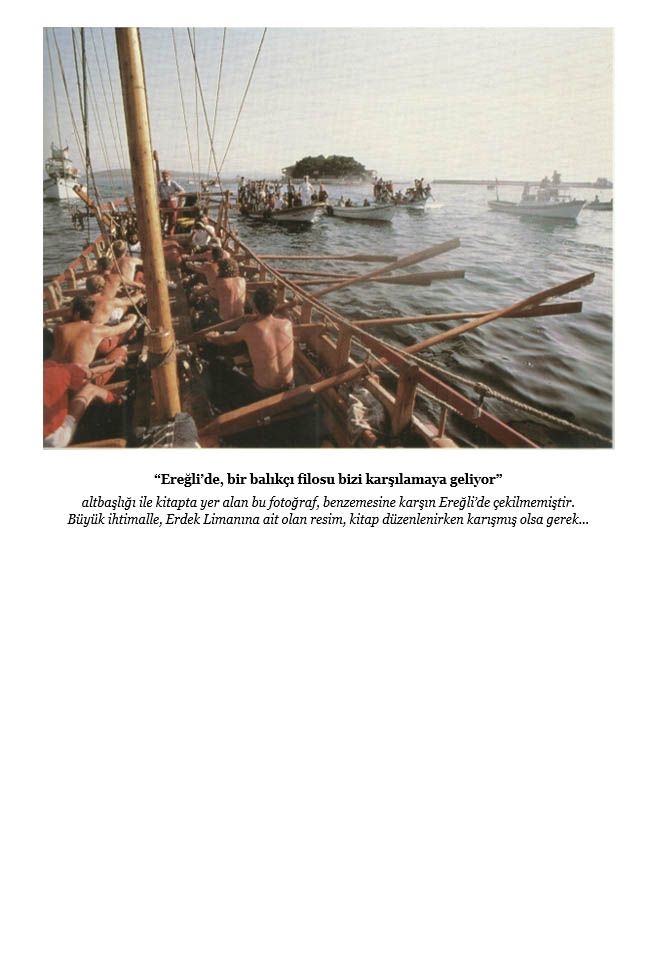“19 Haziran saat ondört otuzda yüzme hocası Mark Richards yolculuğun iki yüz bininci küreğinin çekildiğini duyurdu bize. Mürettebat geri sayımın son anlarında bile kürek çekme ritmini arttıracak kadar coşku doluydu. Sabahın yedi kırkbeşinden beri, kahvaltı dahi etmeksizin kürek çektiklerine inanmak mümkün değildi. Akşamüstü uzaklarda patlayan bir fırtınanın bize gönderdiği esintiyle sonunda Ereğli burnuna ulaştık. Apollonios’a göre, buranın arkasında Cehennemin Ağzı bulunuyordu -Jason ve ilk Argo’nun seyahatinin bugün de tanımlayabildiğimiz noktalarından biri..