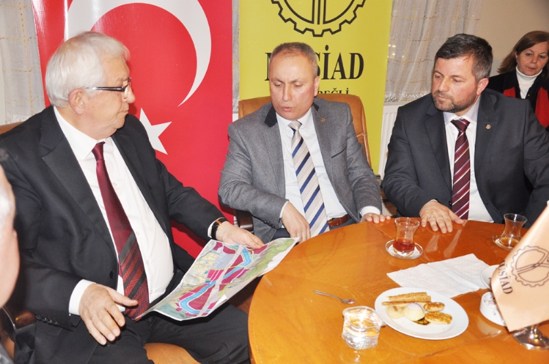 Ekibiyle birlikte daha sonra MÜSİAD Ereğli Şubesine geçen Başkan Halil Posbıyık, burada MÜSİAD Başkanı İbrahim Sezer ve yönetimi tarafından karşılandı.