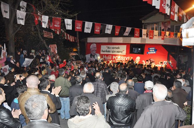 Sloganlar eşliğinde halka seslenen Belediye Başkanı Halil Posbıyık, şehri menfaatçilerin ameliyata yatırmasına müsaade etmeyeceğini belirterek; “Bu şehrin bir dokusu var, bir kültürü var.. İmar rantı, siyasi menfaat, ihale çıkarcılığı için, dün birbirlerine küfredenler bile toplanmışlar, 31 Mart sabahı Ereğli Belediyesini ele geçirebilirmiyizin derdine düşmüşler.. Bunlar es kaza seçim kazansınlar, parça pençik ederler Ereğli’yi.. Bu menfaatçilerin, Ereğli’yi birilerinin eliyle ameliyata yatırmasına müsaade etmem” dedi.