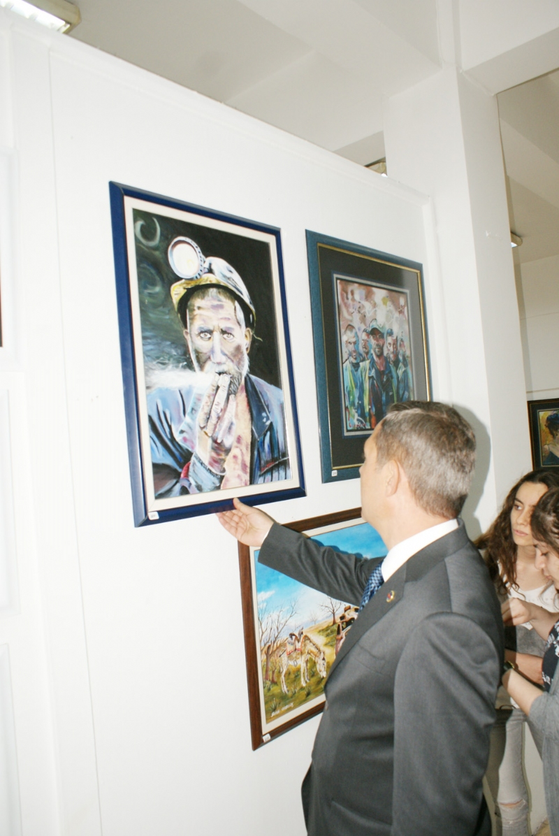 Önce Erdemir Güzel Sanatlar Lisesi öğrencilerinin açtığı resim sergisini gezen UYSAL, burada geleceğin yetenekli genç ressamlarından eserleri hakkında bilgi alırken yine genç sanatçıları onure etmek adına sergi salonunda bulunan ve ilgisini çeken "Madenci" konulu bir portre çalışmasını da satın aldı.