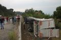 Lastiği patlayan sac yüklü TIR yoldan çıkarak devrildi. Kazada TIR sürücüsü Necdet Hanedan yaralandı.