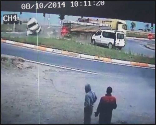 Kaza anı ise çevredeki bir iş yerine ait güvenlik kamerası tarafından saniye saniye kaydedildi. Görüntülerde TIR ile minibüsün çarpışması ve çarpışma sonrasında minibüsün savrulması, savrulma sırasında araç içerisindekilerin yola savrulması görülüyor. Polis kaza ile ilgili tahkikatı sürdürüyor.