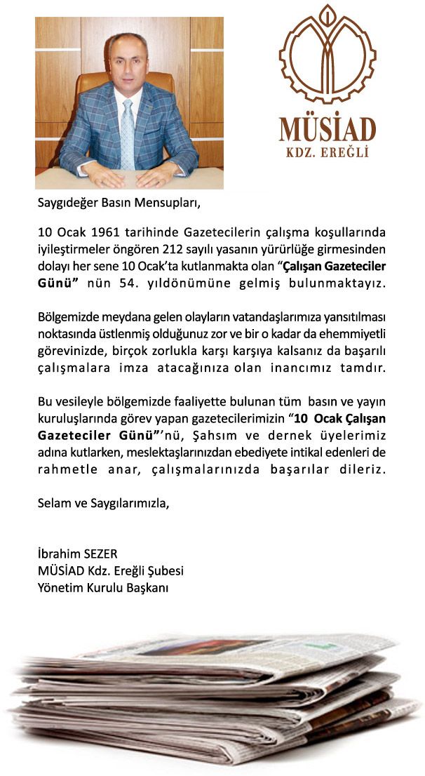 tüm gazetecilerin ve ereğli gazetelerinin gazeteciler gününü tebrik ederim özgülükler sizlerin olsun.