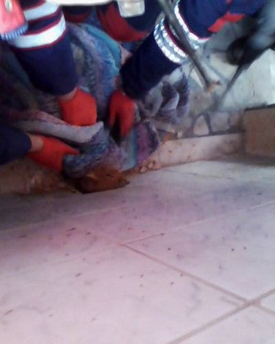 Ereğli'de kafası su giderine sıkışan kedi itfaiye ekiplerinin duvarı kırması ile kurtarıldı. Hilti ile kırılan duvardan kopan parçaların kediye zarar vermemesi için kedinin üzeri battaniye ile kapatıldı.