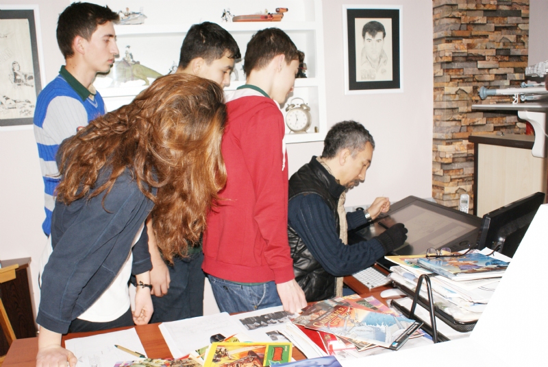 ALEMDAR ve ÇANAKKALE konusunda bilgi almak için Gazete Ereğli'ye gelen öğrenciler Post ve Post Yayıncılık'ın çizim stüdyosuna hayran kaldılar. Kurtuluş AYYILDIZ'dan çalışmaları hakkında bilgi alan gençlere çizgi roman hakkında bilgiler veren AYYILDIZ, Çizgi roman ile aynı alan olan Film Çekimi, Senaryo ve Story Board çalışmaları hakkında da gençleri bilgilendirdi.