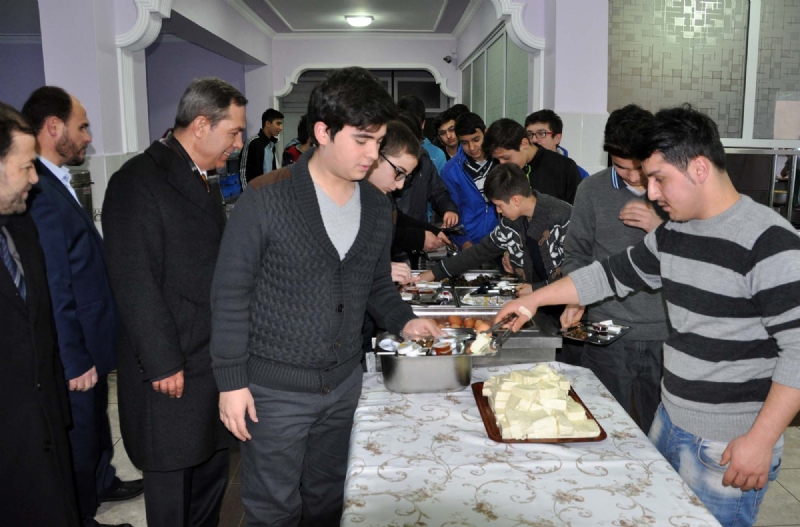 İmam Hatip Lisesi Yurdu’nda kahvaltı öncesi öğrencilere başarılar dileyerek başarının sırırının erken kalkmakta olduğunu söyleyen Başkan Uysal, “Ne derler bilirsiniz. Erken kalkan erken yol alır. Sizde böyle yapın ki başarılı olasınız.” dedi. Başkan Uysal öğrencilerden isteklerini sorunca en fazla istek ise ‘Spor Salonu veya Futbol Sahası’ isteği oldu.
