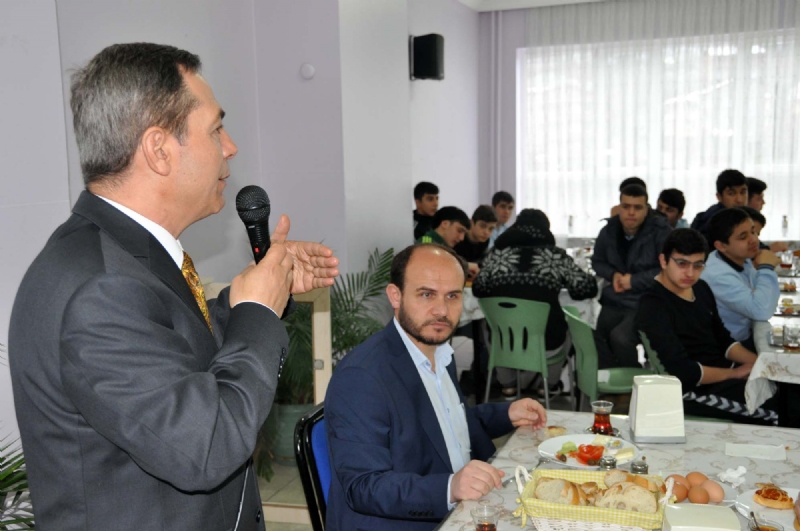İmam Hatip Lisesi Yurdu’nda kahvaltı öncesi öğrencilere başarılar dileyerek başarının sırırının erken kalkmakta olduğunu söyleyen Başkan Uysal, “Ne derler bilirsiniz. Erken kalkan erken yol alır. Sizde böyle yapın ki başarılı olasınız.” dedi. Başkan Uysal öğrencilerden isteklerini sorunca en fazla istek ise ‘Spor Salonu veya Futbol Sahası’ isteği oldu.