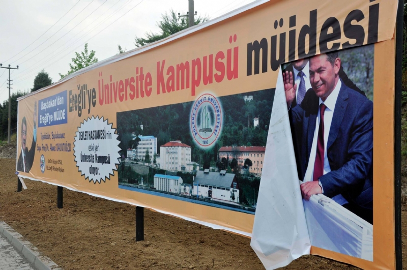Kdz. Ereğli Belediye Başkanı Hüseyin Uysal'ın, 'Ereğli'ye Müjde' pankartları asıldıkları bilboardların üzerinde şehir magandaları tarafından kesilerek yırtılmak istendi.