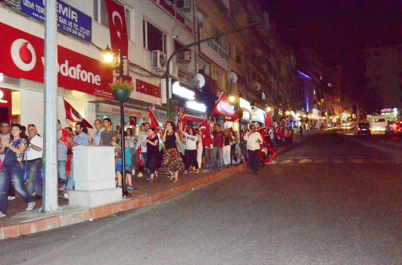 Karadeniz Ereğli’de her Zafer Bayramı’nda ve her Cumhuriyet Bayramı’nda geleneksel hale gelen kortej yürüyüşü, bu yıl hükumetin koyduğu kutlama sınırlamalarına takılmıştı. Buna rağmen 19.30’dan itibaren Bağlık Karakolu önünde toplanan yüz kadar vatandaş her yıl gerçekleştirdiği yürüyüşü bu Zafer Bayramı’nda da yaptı. 20.30’da Bağlık Karakolu önünden başlayan ve Atatürk Anıtı önünde sona eren yürüyüş boyunca korteje katılan gencinden yaşlısına, kadınından erkeğine herkes cadde ve sokakları sloganlarla inletti. Yürüyüşte “Ne Mutlu Türk’üm Diyene”, “Her Türk Asker Doğar”, “Askere Uzanan Eller Kırılsın”, “Polise Uzanan Eller Kırılsın”, “Meclis’te PKK İstemiyoruz”, “Vatan Sana Canım Feda”, “Mustafa Kemal’in Askerleriyiz” sloganları atan kortejin yürüyüşü yaklaşık bir saat sürdü. Atatürk Anıtı önünde bir araya gelen vatandaşlar Ulu Önder Mustafa Kemal Atatürk, O’nun silah arkadaşları ve vatan müdafaasında hayatını kaybeden şehitlerimiz için bir dakikalık saygı duruşunda bulunduktan sonra İstiklal Marşı’nı söyledi. Marş’ın okunmasından sonra etkinlik sona erdi. Vatandaşların bireysel olarak hiçbir yönlendirme olmadan katıldıkları Zafer Bayramı Korteji sırasında Karadeniz Ereğli İlçe Emniyet Müdürlüğü personelinin yapıcı bir tutum izlediği de gözlerden kaçmadı. Atatürk Anıtı önünde son bulan buluşmada İlçe Emniyet Müdürlüğü personeline duyarlı yaklaşımlarından dolayı teşekkür edildi. Vatandaşlar araç trafiğini kapatmamak için güzergah boyunca kaldırımlardan yürüdü. Korteje katılanlar arasında Demokratik Sol Parti Karadeniz Ereğli İlçe Başkanı Mustafa Timur, Cumhuriyet Halk Partisi 24. Dönem Zonguldak Milletvekili Aday Adaylarından Yaşar Balcı, Atatürkçü Düşünce Derneği Başkanı Emin Semih Özkök, Türk Hava Kurumu Karadeniz Ereğli Şube Başkanı Muhammet Likoğlu, Karadeniz Ereğli Rotary Kulübü Dönem Başkanı Mustafa Gür, Medya Herkül İmtiyaz Sahibi Mustafa Özkan ve Gazete Ereğli İmtiyaz sahibi Kurtuluş AYYILDIZ gibi isimler de yer aldı.