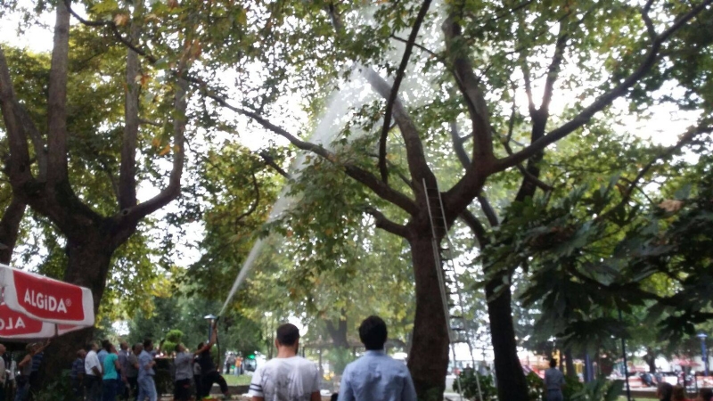 Karadeniz Ereğli'nin kent merkezinde bulunan İnönü Parkı ile otobüs duraklarının arasında bulunan tarihî çınarda tam dört gündür yaşamaya çalışan bir kedi itfaiye ekiplerini uğraştırmaktan bıkmadı. Pazartesi günü de akşam saatlerinde itfaiye ekiplerinin indirmeye çalıştığı yaramaz kedi, saatlerce üstüne su sıkılmasına rağmen yaşlı çınardan düşmedi. İtfaiye'nin vatandaşları da tedirgin eden kedi operasyonu bir türlü başarıya ulaşamadı. Haber yayına hazırlandığı saatlerde de operasyon (!) sürüyordu. Hemen hemen birçok etkinliğinde Karadeniz Ereğli İtfaiyesi'nin modern yapısından ve çağa ayak uyduran araçlarından övgüyle bahseden yetkililer, bir kedinin karşısında çaresiz kaldılar. Avrupa ülkelerinde uygulanan kurtarma çalışmalarından örnek almadıkları belli olan itfaiye çalışanları, kediyi iğneli tüfek yardımıyla uyutup aşağıya indirmek yerine itfaiye arazözü ile tazyikli su sıkarak indirmeye çalıştılar. Ancak her su tutuluşunda bulunduğu ağacın daha yüksekteki dallarına çıkmayı beceren yaramaz kediyi düşürmek bir türlü mümkün olmadı. İtfaiyenin su sıkma yöntemiyle indirmek istediği kedinin hayatından endişe eden birçok vatandaş da uygulanan bu yöntemin doğru olmadığını belirtseler de opersayon başladığı gibi devam etti.