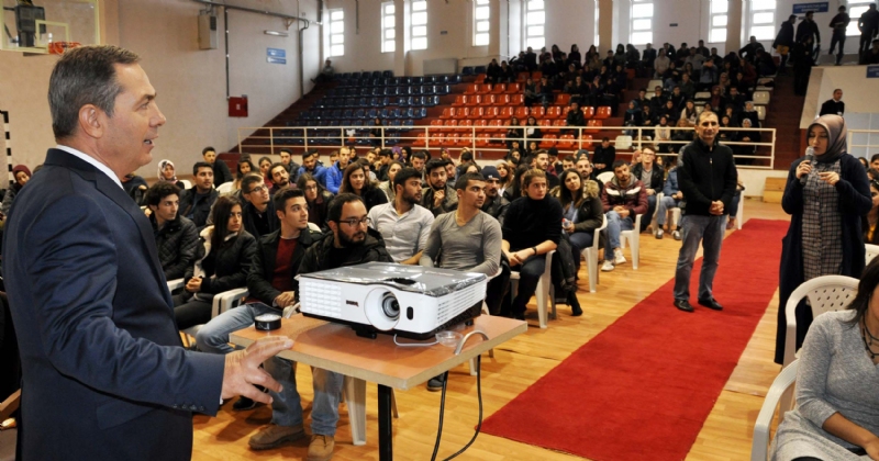 Ardından kısa bir konuşma yapan Başkan Uysal, konuşmayı ayakta yapacağını belirterek alkışlandı. Uysal konuşmasına, üniversite öğrencileri ile bir arada olmaktan duyduğu memnuniyeti dile getirerek başladı.