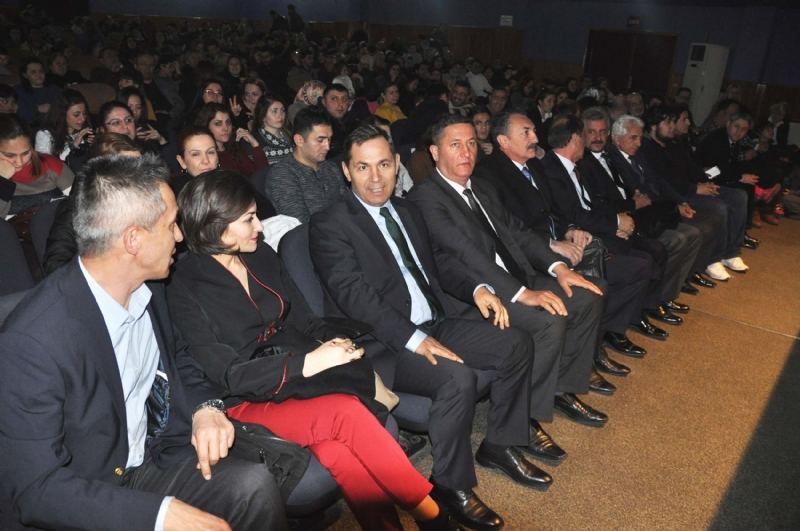 Oyun sonunda tiyatroya verdiği katkılardan dolayı Kent Konseyi Başkanı Noyan Keskin’in plaket takdim ettiği Belediye Başkanı Hüseyin Uysal, tiyatro oyuncularını tek tek kutlarken, Oyuncu-Yönetmen M. Cahit İşper’e de çiçek verdi.