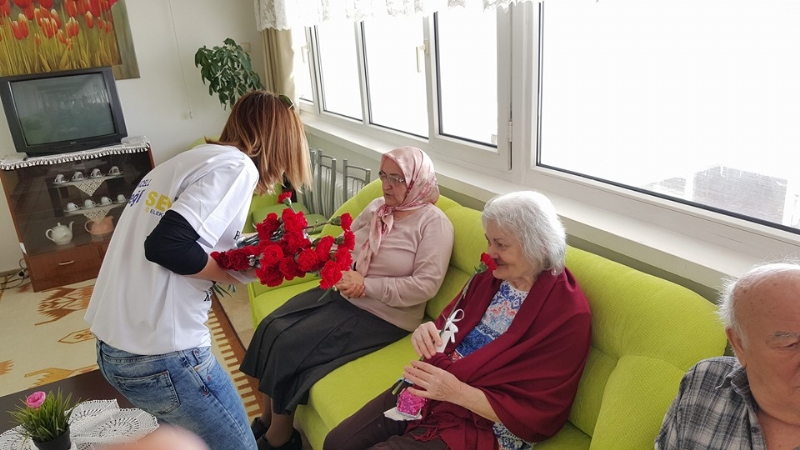 Öte yandan mağaza çalışanlarından bir grup da hastane ve huzur evini de ziyaret ederek buradaki bayanlara karanfil vererek onların da gönlünü almayı ihmal etmediler.