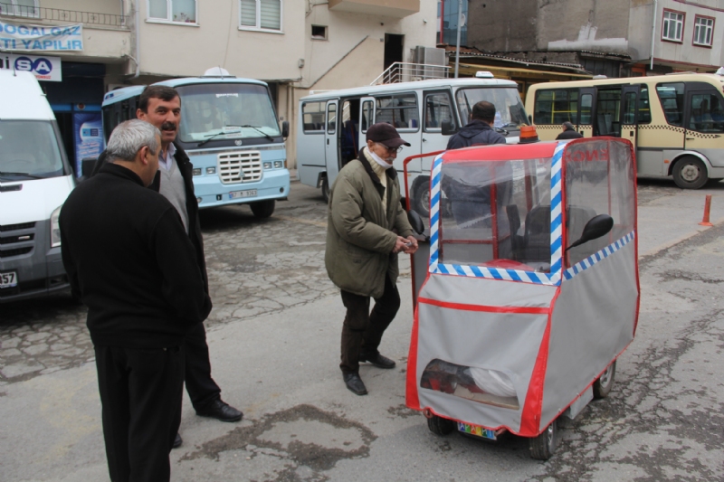 Engelli aracı ile trafikte kilometrelerce yol katediyor