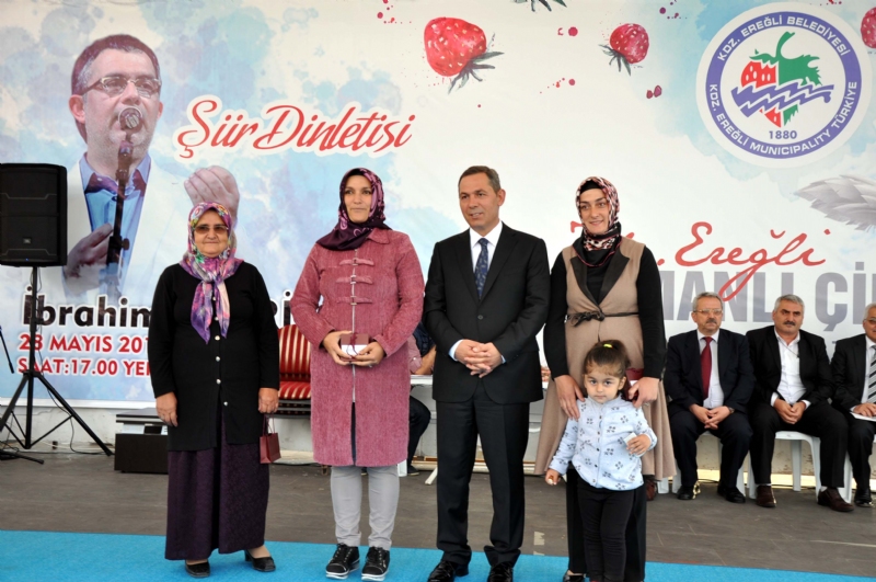 Karadeniz Ereğli’de 27-28-29 Mayıs tarihleri arasında gerçekleştirilen Osmanlı Çileği Kültür ve Sanat Şenlikleri kapsamında düzenlenen ‘En güzel çilek, Çilek Bilgi Yarışması ve Çilekli Pasta yarışmalarında dereceye girenlere ödülleri protokol tarafından verildi.