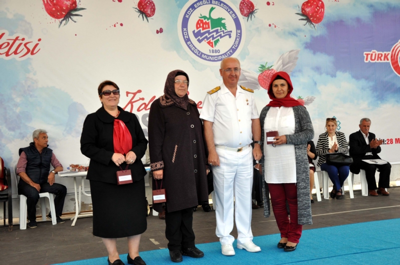 Karadeniz Ereğli’de 27-28-29 Mayıs tarihleri arasında gerçekleştirilen Osmanlı Çileği Kültür ve Sanat Şenlikleri kapsamında düzenlenen ‘En güzel çilek, Çilek Bilgi Yarışması ve Çilekli Pasta yarışmalarında dereceye girenlere ödülleri protokol tarafından verildi.