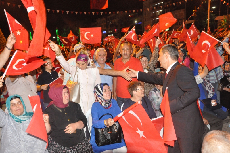 15 Temmuzda FETÖ’cü Terör Örgütüne mensup kişilerce gerçekleştirilmeye çalışılan darbe girişimine karşı, Belediye Başkanı Hüseyin Uysal’ın çağrısı üzerine alanlarda toplanan binlerce Kdz.Ereğli halkı, demokrasi nöbeti tuttu.