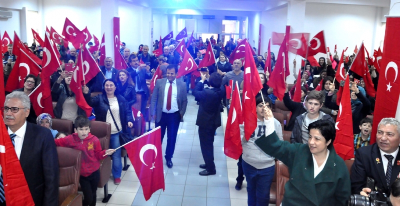 Saygı Duruşu ve İstiklal Marşı ile başlayan konferans, öğrenciler tarafından okunan Çanakkale ve 15 Temmuz şiirleri, kısa film gösterisi ile sürerken, Turgut Kaçmaz’ın fon müziği eşliğinde Çanakkale savaşlarını anlatımıyla sürdü. Salonun almadığı konferansta ellerindeki Türk bayraklarıyla coşku yaşayan vatandaşlar, konferansı ayakta izledi.