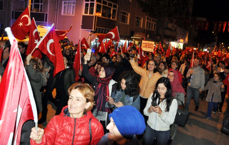 Bağlık Polis Karakolu önünden marşlarla başlayan yürüyüşe katılan protokol, siyasi partilerin ve sivil toplum kuruluşlarının temsilcileri ve ilçe halkı, ‘Ne mutlu Türküm diyene’ sloganları atarak, Atatürk Anıtı önüne kadar yürüdü.
