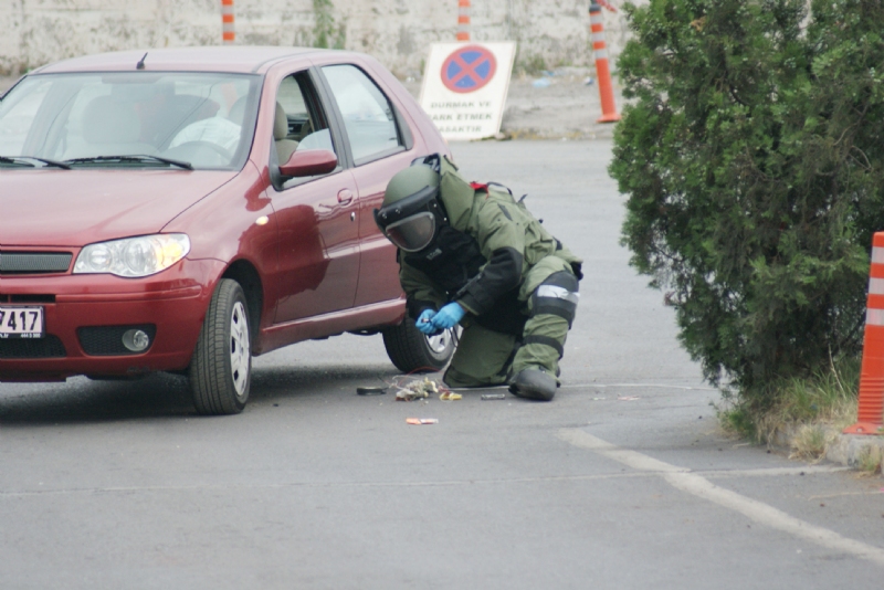 Çıplak gözle bakıldığında üzerinde bant ve kabloların olduğu 30-40 cm lik bir parçanın aracın altında olması Emniyet yetkililerince bomba şüphesi ile Zonguldak'tan bomba uzmanı istendi.