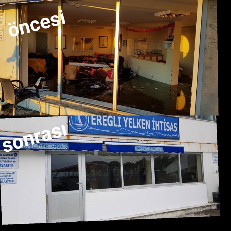 Ocak ayında Batı karadenizde gerçekleşen ve ilçemizdeki çekekler ve sahil bölgesinde büyük hasara yol açan fırtına sonrası yaralar sarılmaya devam ediyor. Ereğli’de sahil kesiminde faaliyet gösteren Ereğli Yelken ve İhtisas Kulübü’de bu fırtına sonrası büyük hasar görmüş, hem kulüp binası hemde tekneler kullanılamaz hale gelmişti.