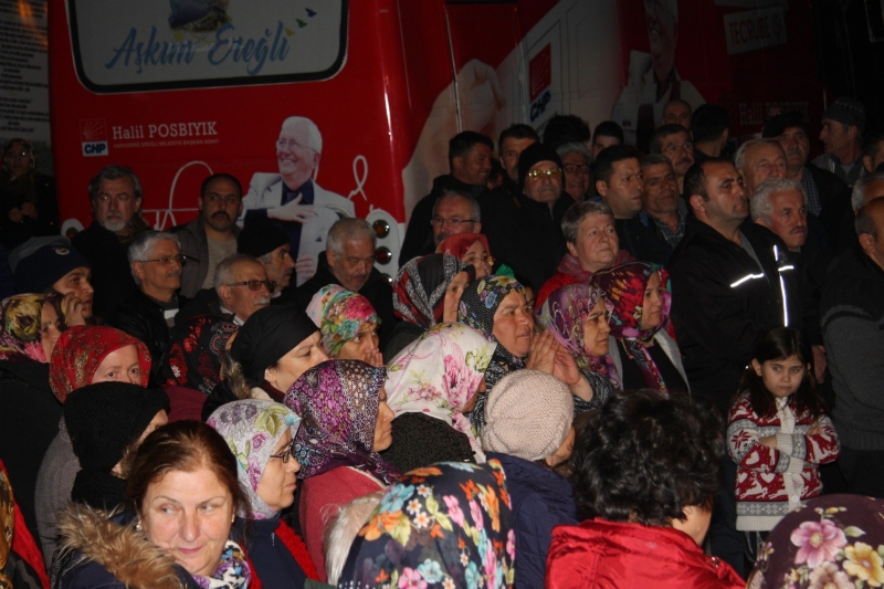 Beraberindeki meclis üyesi adaylarıyla sabahın ilk saatlerinden itibaren seçim çalışmalarına devam eden Cumhuriyet Halk Partisi Kdz. Ereğli Belediye Başkan Adayı Halil Posbıyık, akşamını ise Uzunmehmet Mahallesi sakinlerine ayırdı.
