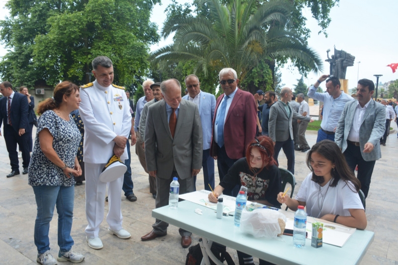 Çelenk töreninin ardından İnönü Parkı’nda gerçekleştirilen Resim Çalıştayı çerçevesinde, ilçede faaliyet gösteren resim atölyelerinde eğitim gören kursiyerlerin katılımıyla canlı resim performansı gerçekleştirildi.