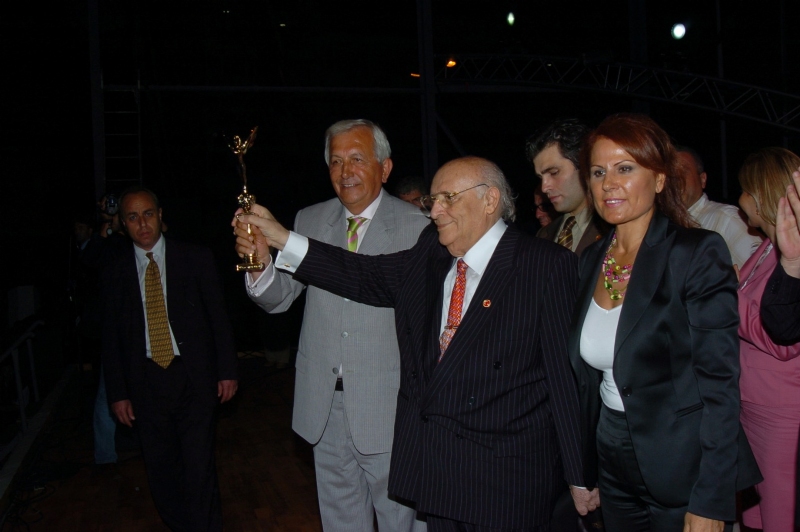 TURGUT ÖZAKMAN: Bu ödüllerimizin arkası kesilmedi ve "Şu Çılgın Türkler" kitabının yazarı Rahmetli Turgut Özakman’ı yüz binlerce seveninin önüne çıkarıp Karadeniz Ereğli festival sahnesinde kendisine Sevgi, Barış,Dostluk Ödülü’nü verdik.