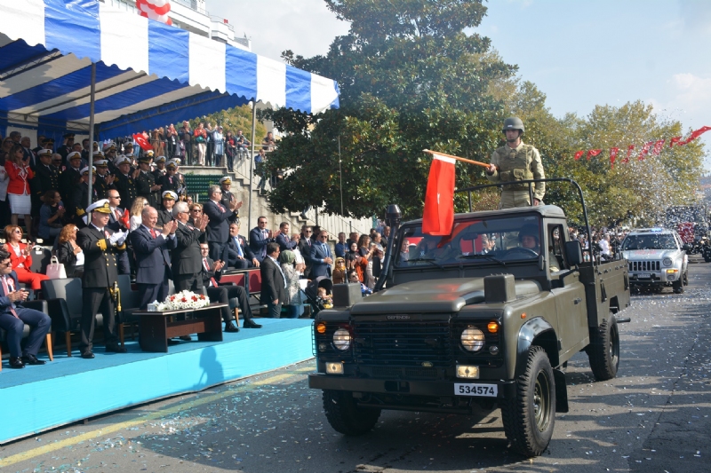 Kdz.Ereğli Kaymakamı İsmail Çorumluoğlu'nun Devrim Bulvarı'ndaki Atatürk anıtı arkasında kurulan alanda Karadeniz Bölge ve Garnizon Komutanı Tuğamiral Hüseyin Sami Uyar, Ereğli Belediye Başkanı Halil Posbıyık'ın tebrikleri kabulüyle başlayan kutlamalar, sahil bulvarındaki törenle devam etti.