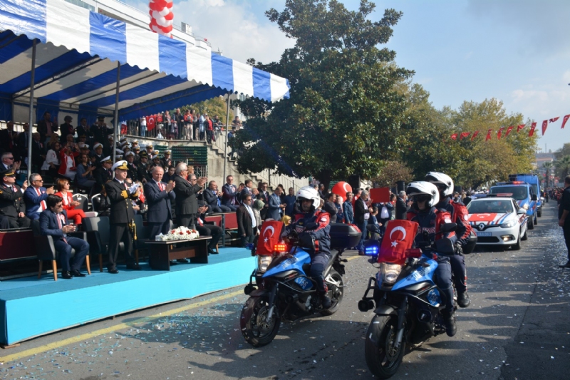 Kdz.Ereğli Kaymakamı İsmail Çorumluoğlu'nun Devrim Bulvarı'ndaki Atatürk anıtı arkasında kurulan alanda Karadeniz Bölge ve Garnizon Komutanı Tuğamiral Hüseyin Sami Uyar, Ereğli Belediye Başkanı Halil Posbıyık'ın tebrikleri kabulüyle başlayan kutlamalar, sahil bulvarındaki törenle devam etti.