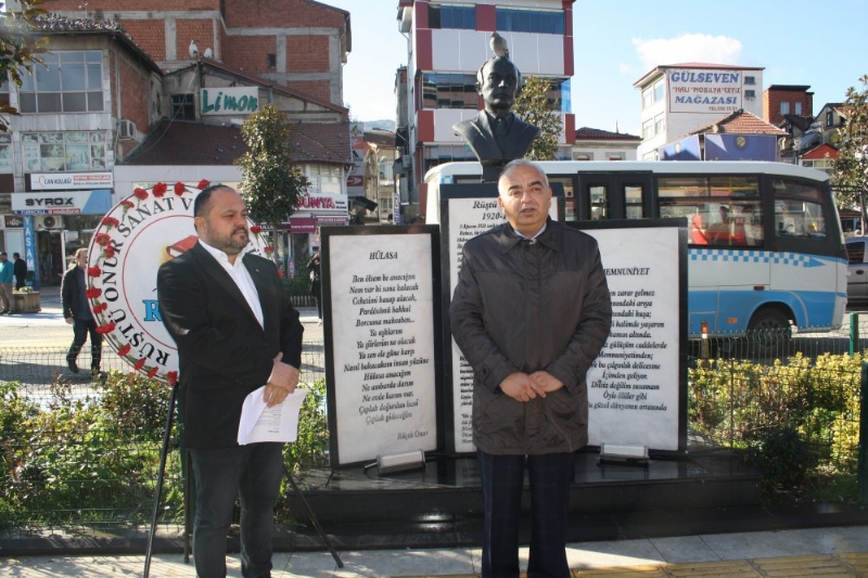 Devrek Rüştü Onur Sanat ve Kültür Derneği (ROSAK) tarafından Cumhuriyet Alanı'ndaki Rüştü Onur'un büstü önünde düzenlenen törene, Devrek Belediye Başkanı Çetin Bozkurt, CHP Zonguldak İl Başkan Yardımcısı Zeki Esen, Rüştü Onur Sanat ve Kültür Derneği İbrahim Tığ ve sanatseverler katıldı. Rüştü Onur'un büstüne çelenk sunumuyla başlayan törende konuşan ROSAK Başkanı İbrahm Tığ, Devrekli şair Rüştü Onur'u vefatının 77. yılında saygıyla andıklarını bildirdi. Konuşmasında, Rüştü Onur ardında bir kitaplık şiir, öykü ve mektup bırakarak 2 Aralık 1942 tarihinde 22 yaşın baharında aramızdan ayrıldığına, değinen İbrahim Tığ, “Rüştü Onur edebiyat tarihinde yerini almıştır” dedi. Tığ şöyle konuştu, “Rüştü Onur, kısacık ömrüne az sayıdaki ama kendine özgü tekniği ve üslubu olan şiirleri sığdırmış, ‘Garip Akımı’nın önemli temsilcilerinden biri olarak edebiyat tarihimizde yerini aldı. İlk hamurunu Zonguldak’ta Edebiyat öğretmenliği yapan, dostu Behçet Necatigil’in yoğurduğu Onur, yakın arkadaşları Muzaffer Tayyip Uslu ve Kemal Uluser’le Zonguldak ve edebiyat dünyasının simgesi haline geldi. Yeni İnsanlık, Varlık, Ses, Bağ, Servet-i Fünun, Ocak, Kara Elmas, Yeni Zonguldak, Gündüz ve Değirmen adlı dergilerde, şiir, hikaye ve denemeleri yayınlanan Rüştü Onur, dönemin önemli edebiyatçıları; Abdülbaki Gölpınarlı, Oktay Rıfat, Necati Cumalı, Salâh Birsel, Oktay Akbal, Müfide Güzin Anadol ve İbrahim Behçet Kalaycı ile arkadaşlıklar kurdu. Onur’un şiirlerinde yaşam ile ölüm hep bir bütün teşkil eder. Onu, Zonguldak'ın saçak altındaki maden işçileri, çocukları, kenar mahalle insanları, kuşları ve denizi yakından ilgilendirip hüzünlendirmiştir. Bu tutum da Onun edebiyatımızda haklı yerini almasını sağlamıştır.” Konuşmasında Rüştü Onur ile ilgili olarak çeşitli internet siteleri ve gazetelerde yanlış bilgiler olduğuna vurgu yapan İbrahim Tığ, Rüştü’nün eşi Mediha ile 18 gün evli kaldığına işaret etti.