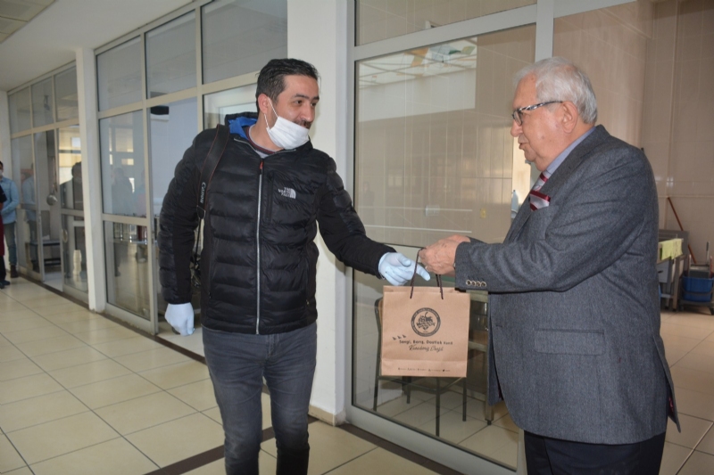 Posbıyık Ereğli’de görev yapan gazetecilere, çalışırken kendilerini korumalarına yardımcı olması için eldiven, maske ve dezenfektan içeren bir hijyen çantası hediye etti.