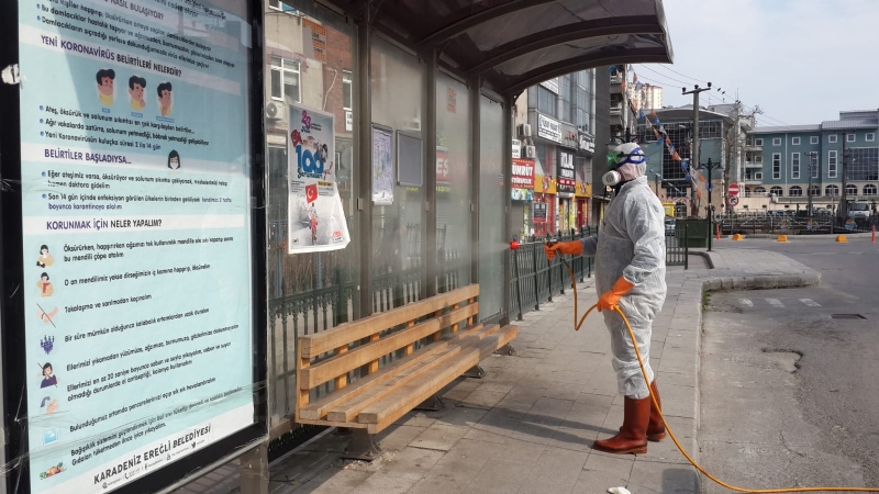 İki günlük sokağa çıkma yasağının ardından Kdz.Ereğli Belediyesi Veteriner İşleri Müdürlüğü Vektör İlaçlama Merkezi ekipleri çalışmalarına ara vermedi. Halkın ortak kullanımında olan otobüs durakları, umumi tuvaletler, bankamatikler, çöp konteynerleri ve çarşı merkezi başta olmak üzere toplam 162 farklı noktada dezenfekte çalışması yapıldı.