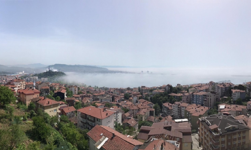 Bugün sabah saatlerinde denizden gelen yoğun sis Karadeniz Ereğli’de değişik görüntülere neden oldu.