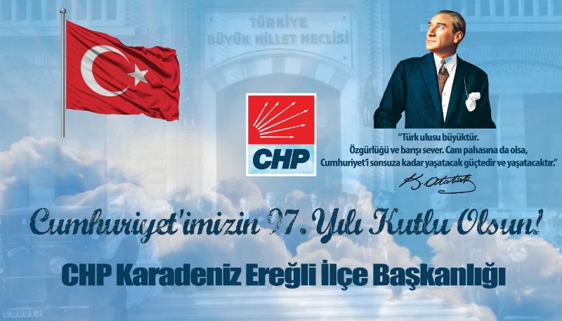 97 yıl boyunca, Cumhuriyet’i ve onun değerlerini yok etmek; Büyük Ata’nın temel ülküsü olan yurtta ve dünyada barışı baltalamak için didinen mihraklara karşı o Cumhuriyet’i koruduk. Korumaya devam edeceğiz. Özellikle, milletimizin tarihinin her safhasında da kendilerine rastlanan iç mihrakların, bu vatanın bütünlüğünü ve milletin birliğini bozmaya yeltenen kirli emellerine karşı, milletimizin en büyük dayanağı Cumhuriyet Halk Partisi’dir. Cumhuriyet Halk Partisi’nin ve onun liderinin ellerinde kurulan ve savaşlarla yorgun düşmüş milletin de desteğiyle ayağa kaldırılan şanlı Cumhuriyet’imizin tüm dünya milletlerine ilelebet ışık olması için her birimiz yılmadan ve tek bir gün dahi hayıflanmadan çalışacağız. Ulu Önder’imizin işaret ettiği gibi, iktidarın içinde bulunabileceği her türlü gaflet ve dalalet karşısında, bundan önce nasıl susmadıysak, bundan önce nasıl çaresizce beklemediysek, yarınlarda da bu gafletin karşısında dimdik duracağız.