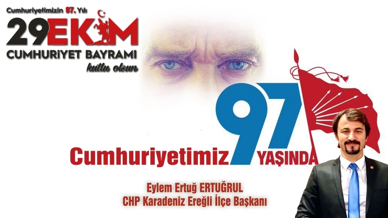 EYLEM ERTUĞRUL; Cumhuriyet’in ilanının 97. yıldönümüne ulaşmanın haklı gurur ve coşkusunu yaşıyoruz.