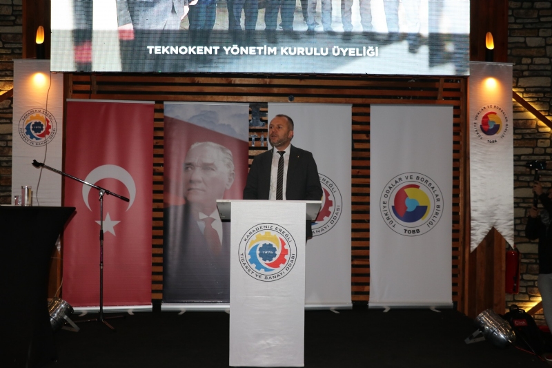 Kahvaltı sonrası katılımcılara hitaben konuşma yapan Kdz. Ereğli TSO Başkanı Arslan Keleş, Ereğli’nin sosyo kültürel, ekonomik ve potansiyeli ile ilgili bilgiler verdi. 1975 yılında kurulan odanın köklü bir geçmişe sahip olduğunu her geçen gün üye sayısını artırdıklarını ifade eden Başkan Keleş, Türkiye Odalar ve Borsalar Birliği’ndeki (TOBB) görevleri, pandemi döneminde yapılan hizmetler, KOSGEB danışmanlığında üyelere sağlanan hizmetler, fuarlar ve çalışmalar ile ilgili bilgiler aktardı.