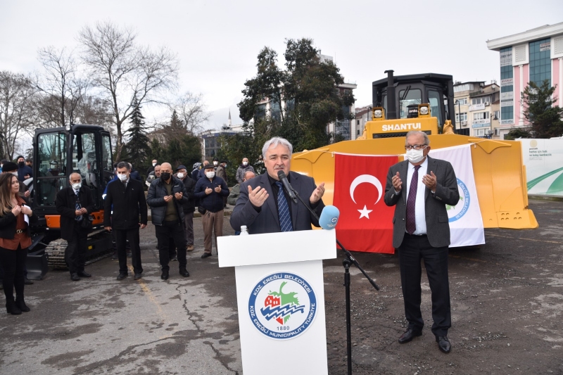 Kdz. Ereğli Belediyesi hizmetlerinde kullanılmak üzere araç parkına dahil edilen dozer, greyder, lastik tekerlekli kazıcı, paletli mini ekskavatör ile iki adet hizmet aracı düzenlenen programda hizmete girdi.
