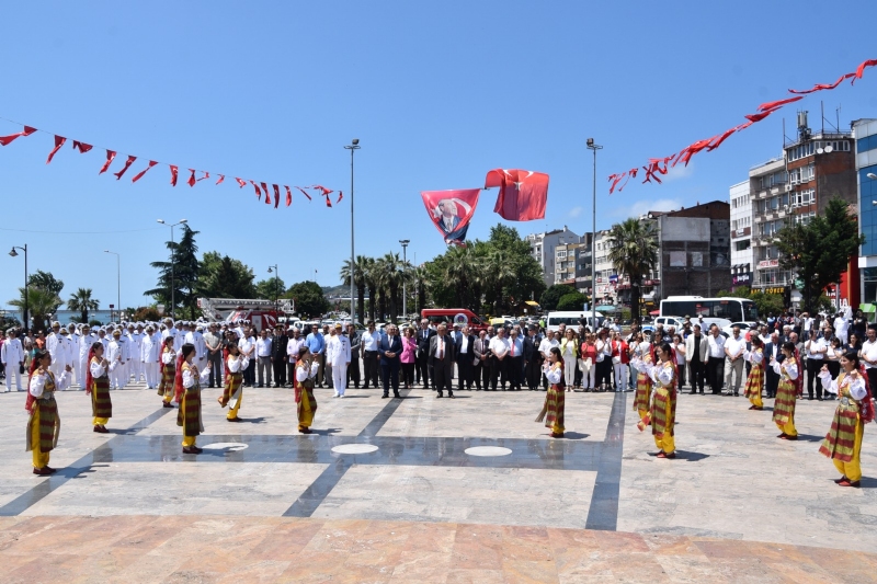 Atatürk Anıtı önünde düzenlenen törene, Kaymakam Mehmet Yapıcı, Belediye Başkanı Halil Posbıyık, Karadeniz Bölge ve Garnizon Komutanı Tuğamiral Niyazi Uğur, Erdemir Genel Müdürü Salih Cem Oral, siyasi parti ilçe başkanları, askeri erkan, Belediye Başkanı Halil Posbıyık’ın eşi Kadın Gücü Kooperatifi Başkanı Neriman Posbıyık, STK temsilcileri, diğer protokol üyeleri ve halk katıldı.