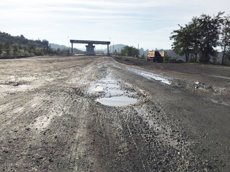 Öyle ki yaklaşık 3 km lik asfalt yolda OSB’nin giriş kapısına kadar araçlar çukurlara düşmemek için zigzaglar çizerek adeta slalom yapmak zorunda kalıyorlar.