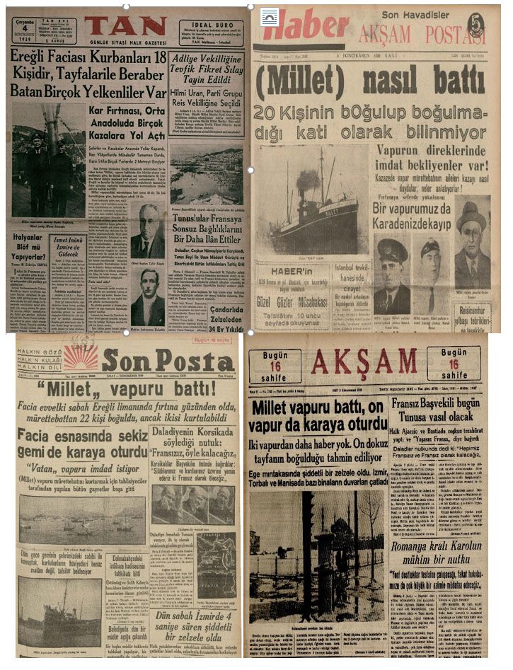 Millet Vapurunun kıyıya çok yakın bir mesafede batması ve mürettebatının büyük bir kısmının hayatını kaybetmiş olması birçok deniz kazasının ardından olduğu gibi kazanın bu trajik boyutuna gözlerin çevrilmesine sebep oldu. Ulusal basında mürettebatın batarken kurtulmak için geminin direklerine tırmandıkları manşete taşınırken, kazadan kurtulan iki kişinin kazaya ve kurtuluşlarına dair anlattıklarına da yer verildi.