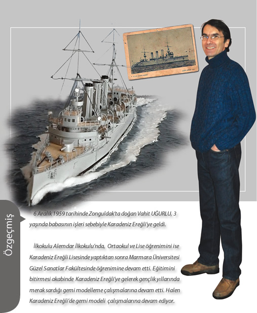 Marmara Üniversitesi Güzel Sanatlar Fakültesi’nde okuyan Vahit UĞURLU'nun çocuk yaşlarda başlayan deniz ve gemi merakı ilerleyen yıllarda Deniz Kuvvetleri Komutanlığına ait gemilere karşı yoğunlaşarak ardından bu tip savaş gemilerini modelleme ile farklı bir boyut kazanır. Bu yolda nasıl ilerlediğinin hikayesini gelin UĞURLU'nun kendisinden dinleyelim...