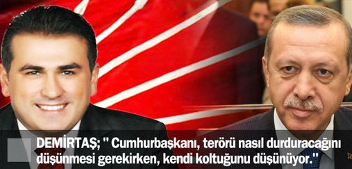 CHP Zonguldak Milletvekili Ünal DEMİRTAŞ yaptığı bir açıklama ile AK Parti ve Cumhurbaşkanı Tayyip ERDOĞAN'a yüklendi. Son günlerdeki terör olaylarında 40'a yakın şehit verdiğimiz halde halen Cumhurbaşkanının kendi koltuğunu düşündüğünü ifade etti.