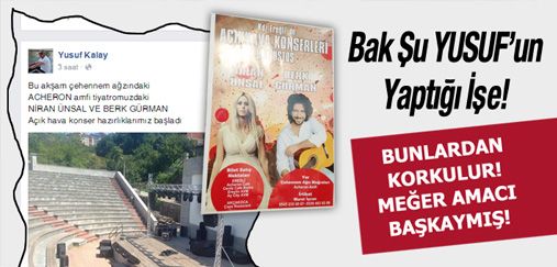 Hem, Halil POSBIYIK'ın Belediye başkanlığı döneminde hem de AK Partili Hüseyin UYSAL'ın belediye başkanlığı döneminde yaptığı muhalif söylemlerle Festivallere karşı çıkan AK Partili Belediye Meclis Üyesi Yusuf KALAY'ın bu çıkışlarının sebebi belli oldu!