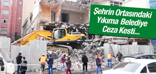Şehrin ortasında yıkım yapan firmaya kaldırımı işgal etmekten ceza kesildi