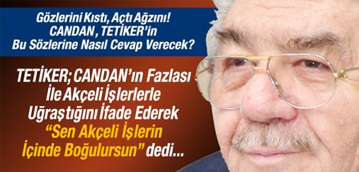 Kdz. Ereğli TSO Başkanı Yaşar Tetiker, AK Parti Zonguldak milletvekili Prof. Dr. Ercan Candan'ın Erdemir Yönetim Kurulu Başkanı Ali Pandır ile ilçedeki bir şirketin borcunun silinmesini ve o şirketin başına başka bir kişinin geçmesini görüştüğünü, seçim döneminde iş adamlarından para topladığını söyledi. Tetiker Candan'a "Bunlar akçeli işler değil mi? Akçeli işlerin içerisinde boğulursun" diyerek sert tepki gösterdi.