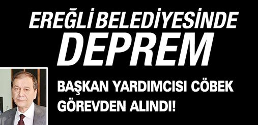 Ereğli belediyesinde deprem. Belediye Başkan Yardımcısı İbrahim Cöbek görevinden alınarak Hal Müdürlüğüne gönderildi.