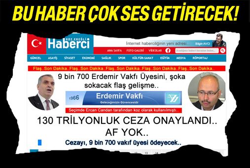 Maliye tarafından Erdemir Vakfına kesilen ve Yerel Seçimlerde Ercan Candan tarafından koz olarak kullanılan 130 trilyonluk ceza onaylandığı ifade edildi. Torba Yasa kanunundan da af çıkmadı. Candan'ın sözünü tutamamış olduğu ve faiziyle birlikte bu cezayı 9 bin 700 vakıf üyesi, alın teri paralarıyla ödeyeceği ifade edilen haber Ereğli Gündemine bomba gibi düştü.